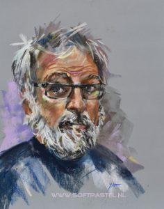 Portret studie “David”, maat 40×30 cm op grijs Pastelmat. (Beschikbaar)