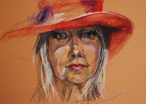 2,5 uur Pastel live studie portret “Model Wil”, maat 40×30 cm op oranje pastel papier.
