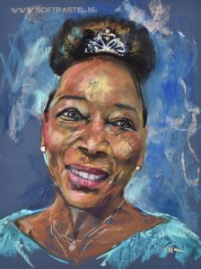 Portret studie “Baroness Floella Benjamin, actrice, auteur en tv presentatrice”, maat 40×30 cm op Pastelmat.