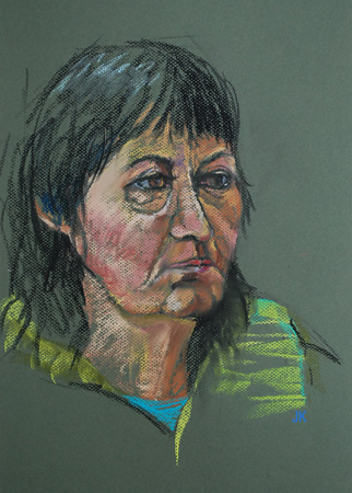 Pastel life studie portret “Model Marian”, maat 40 x 30 cm op groen papier