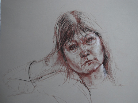 Pastel potlood en houtskool, live studie portret “Model Marian”, maat 50 x 36 cm op grijs pastel papier Ik ben aan deze studie twee weken bezig geweest in de portret- en modelklas. Ik ben nog niet helemaal tevreden maar volgende week is de allerlaatste keer bij het KEW dan houdt dit op te bestaan in…